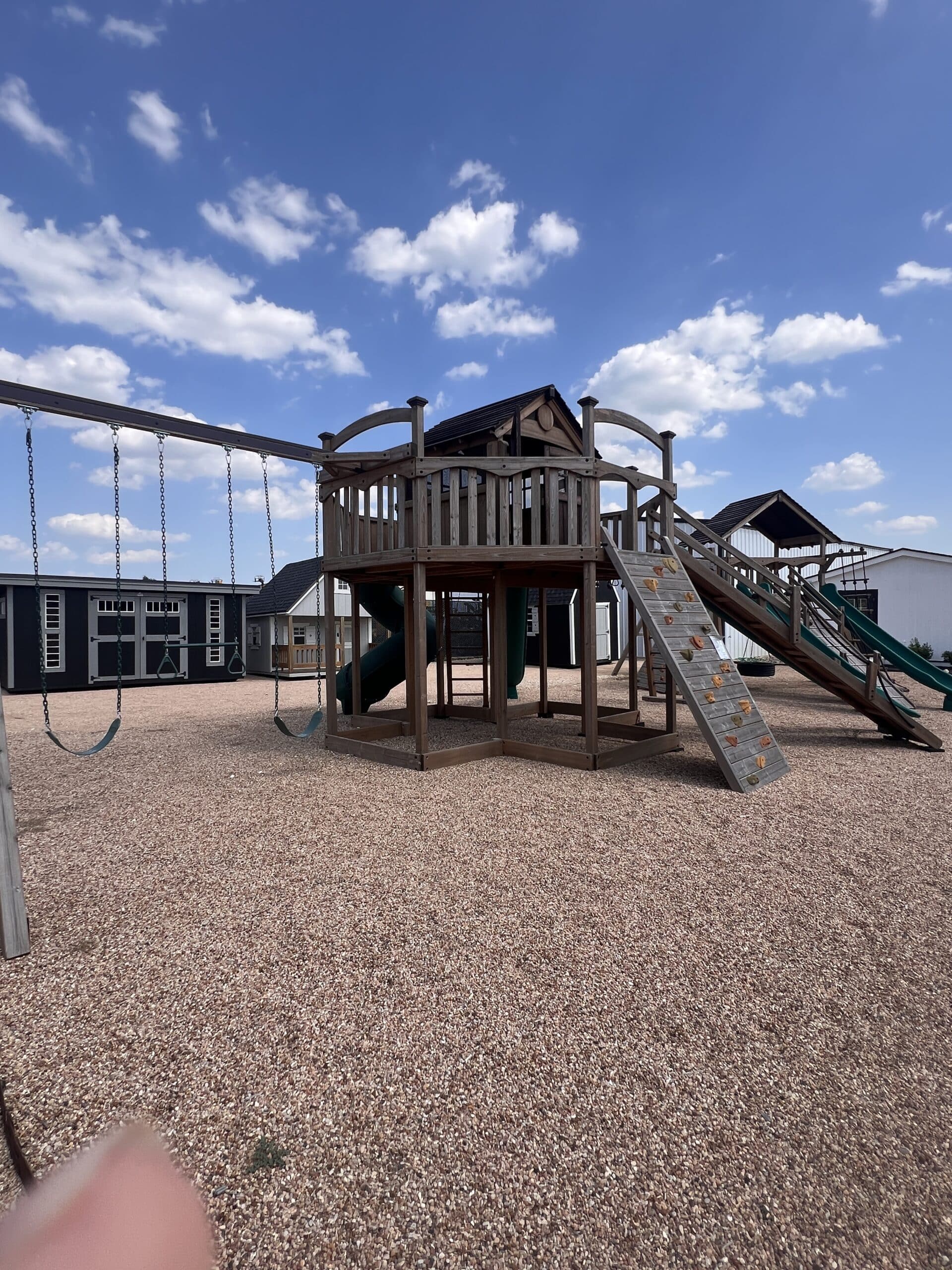 The Titan Treehouse XL 12 swing set takes backyard fun full circle with a 360 degree wrap-around-porch and the most popular play accessories available! The fort structure has a 7′ high deck with 148 sq. ft. of play space. This swing set also includes a wood roof, upper cabin package, 3 position 10′ swing beam, 2 – belt swings, trapeze bar, 2 – 14′ rocket slides, 7′ spiral tube slide, 8.5′ ultimate climber monkey bars, 7′ rock wall, and a gang plank. Treehouse Series play sets include our exclusive limited lifetime warranty on all wood, metal, and hardware components